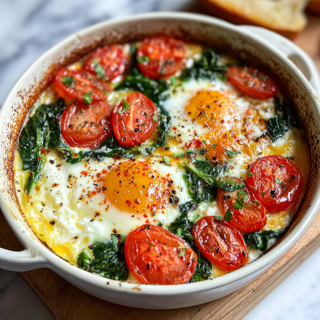 Did you know that shakshuka-style baked eggs are one of the fastest-growing brunch trends online? The Baked Feta Eggs with Spinach and Tomatoes take this concept to the next level, combining creamy feta, fresh spinach, and sweet roasted tomatoes for a dish that’s nutritious, flavorful, and visually stunning.