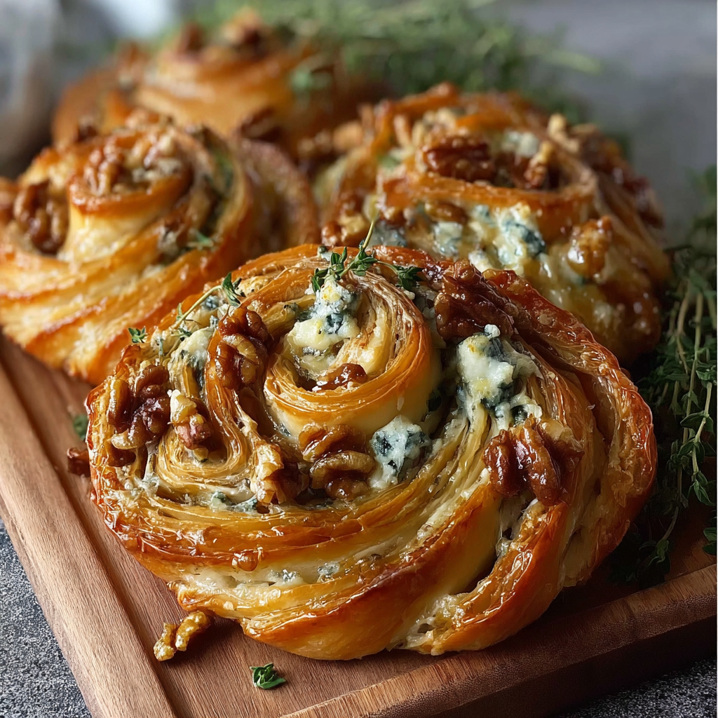 Blue Cheese, Walnut, and Thyme Pull-Apart Puff Pastry Twirl (Savory, Flaky & Elegant)