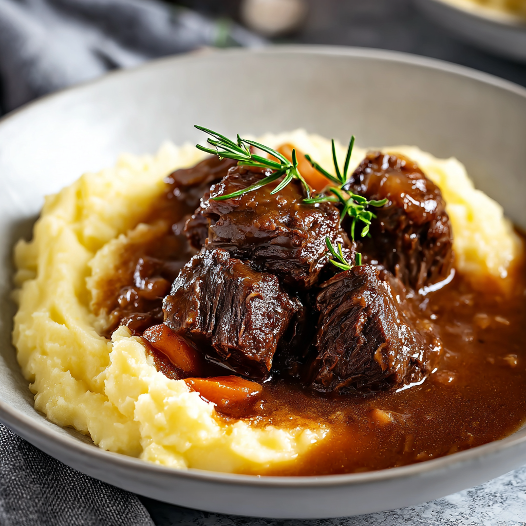 Can I make this in an Instant Pot or pressure cooker? Absolutely. Sear the beef and build the aromatic base using the sauté function, deglaze with wine, add all braising liquid components, seal the lid, and pressure cook on high for 55–65 minutes with a 15-minute natural pressure release. The result is remarkably close to the oven-braised version in a fraction of the time, though the sauce will require more reduction after pressure cooking as the closed environment prevents evaporation.