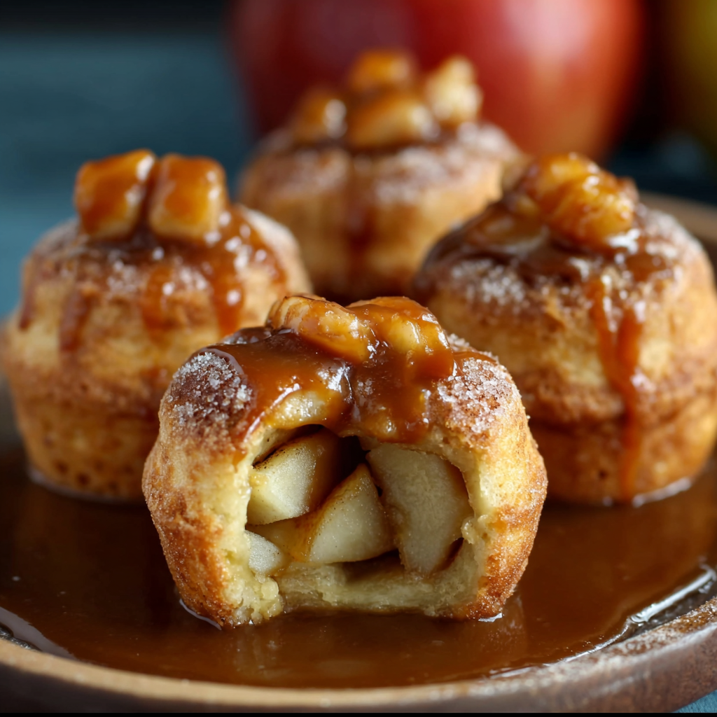 These Caramelized Apple Pie Bombs are bite-sized pockets of golden pastry filled with sweet cinnamon apples and finished with a glossy caramelized coating. They deliver all the flavor of classic apple pie, but in a fun, handheld form that’s crisp on the outside and gooey inside.