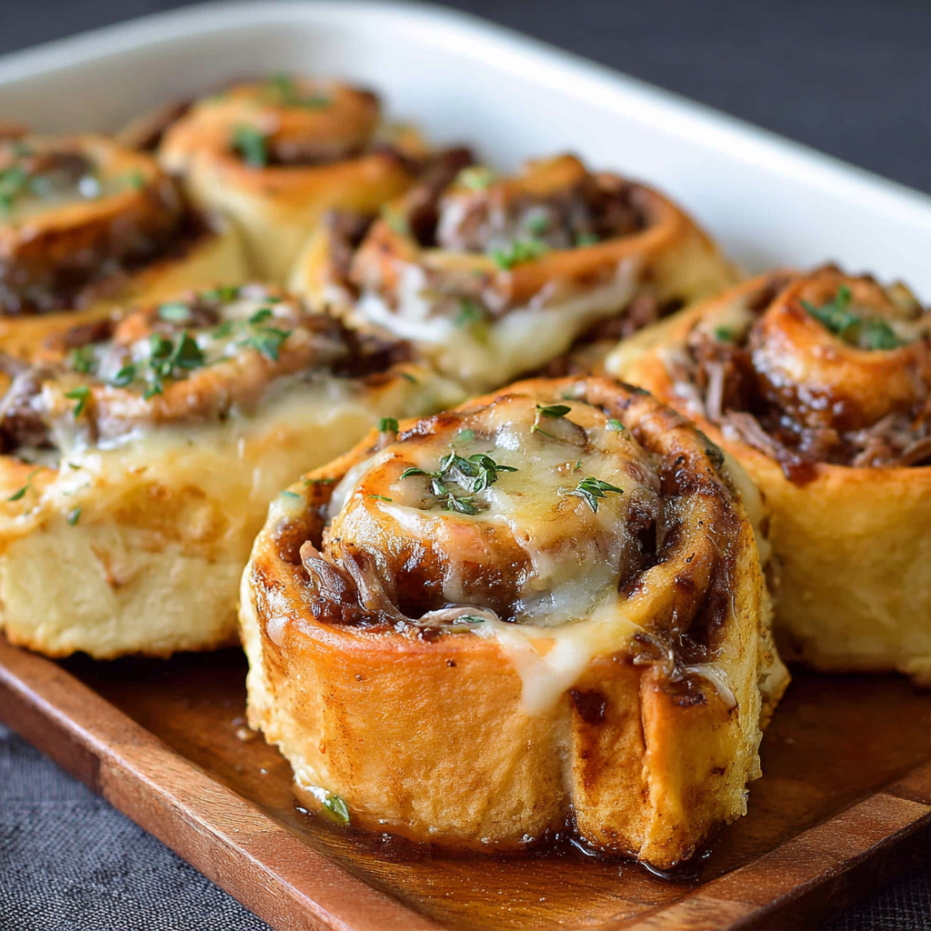 This recipe combines slow-caramelized onions, tender roast beef, and melty cheese wrapped in soft dough or rolls, creating a perfect balance of sweet, savory, and cheesy goodness. Whether for game day, parties, or a quick dinner idea, these rolls deliver bold flavor with minimal effort.