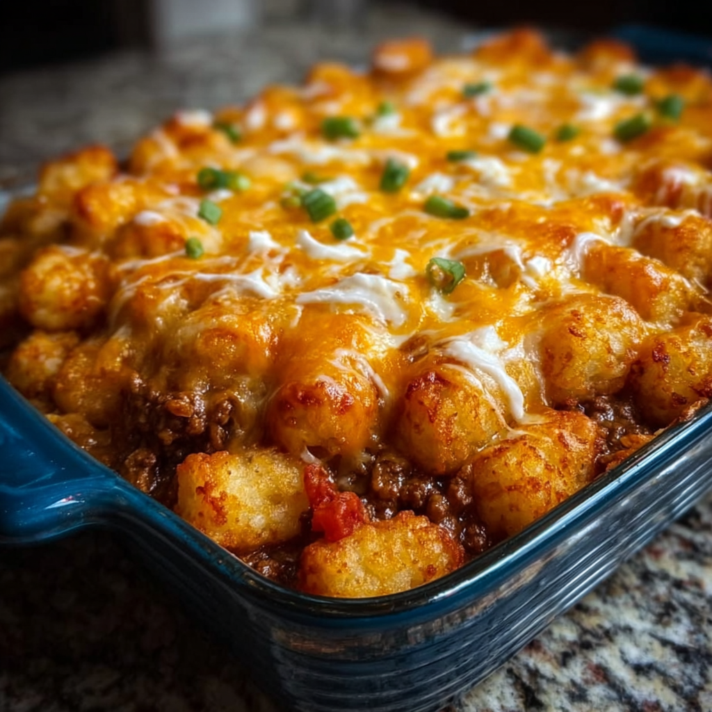 - Bake for 30–35 minutes, until tater tots are golden and crispy.