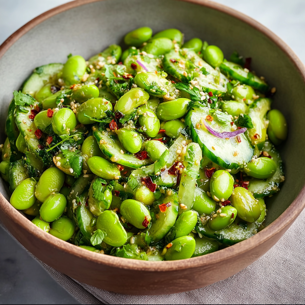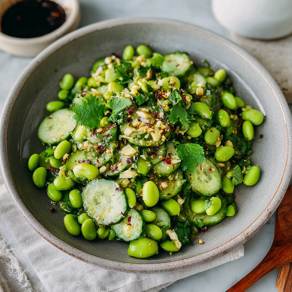 Can I use a different dressing? The sesame ginger dressing is designed specifically to complement the edamame and cucumber combination — its nuttiness, acidity, and aromatic heat create a coherent flavor profile across the entire salad. A miso-tahini dressing, a yuzu ponzu, or a simple rice vinegar and ginger dressing all work in the same flavor family. A Western vinaigrette would produce a technically competent but tonally inconsistent result.
