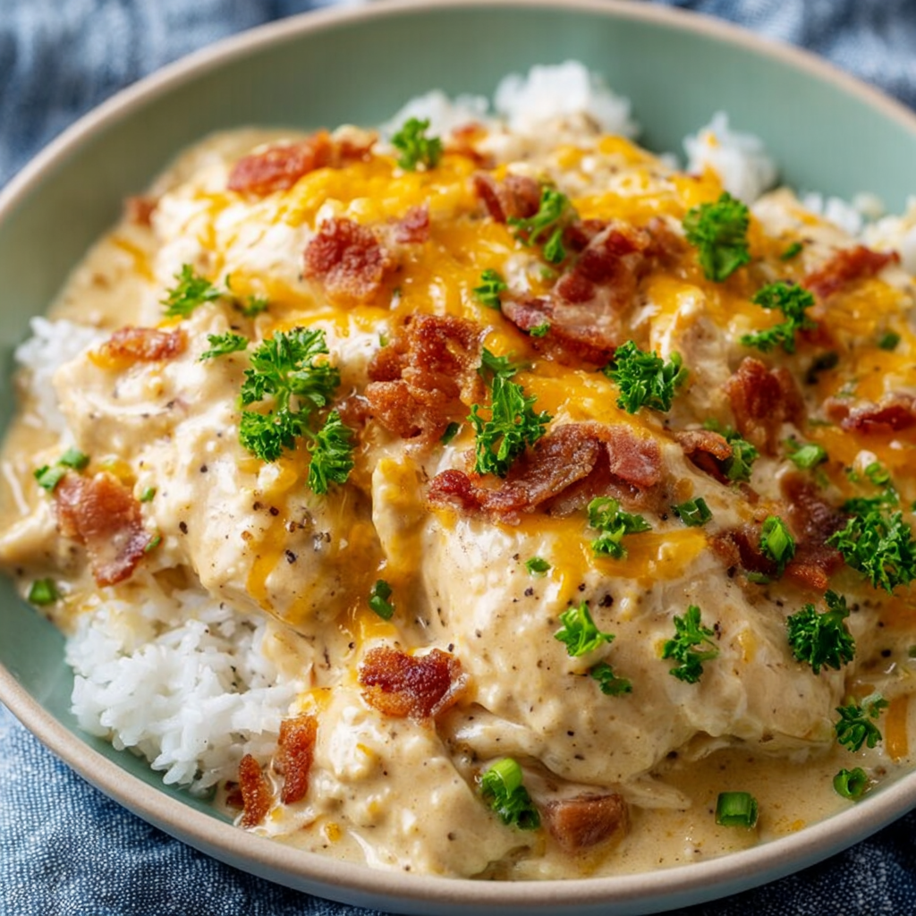 Crock pot crack chicken is the exception that explains the rule. The combination of chicken breast, cream cheese, ranch seasoning, cheddar, and bacon — cooked low and slow until the cream cheese melts into the shredded chicken and the ranch seasoning permeates every fiber — produces something that is genuinely more than the sum of its parts: a creamy, savory, smoky, slightly tangy pulled chicken that is simultaneously a sandwich filling, a pasta sauce, a baked potato topping, a dip, a rice bowl protein, and a stuffing for literally any vessel that can hold it. The name, coined by home cooks who first encountered this recipe, refers to its addictive quality — the combination of fat, salt, savory depth, and the particular satisfaction of slow-cooked, pull-apart chicken that keeps everyone coming back for more.