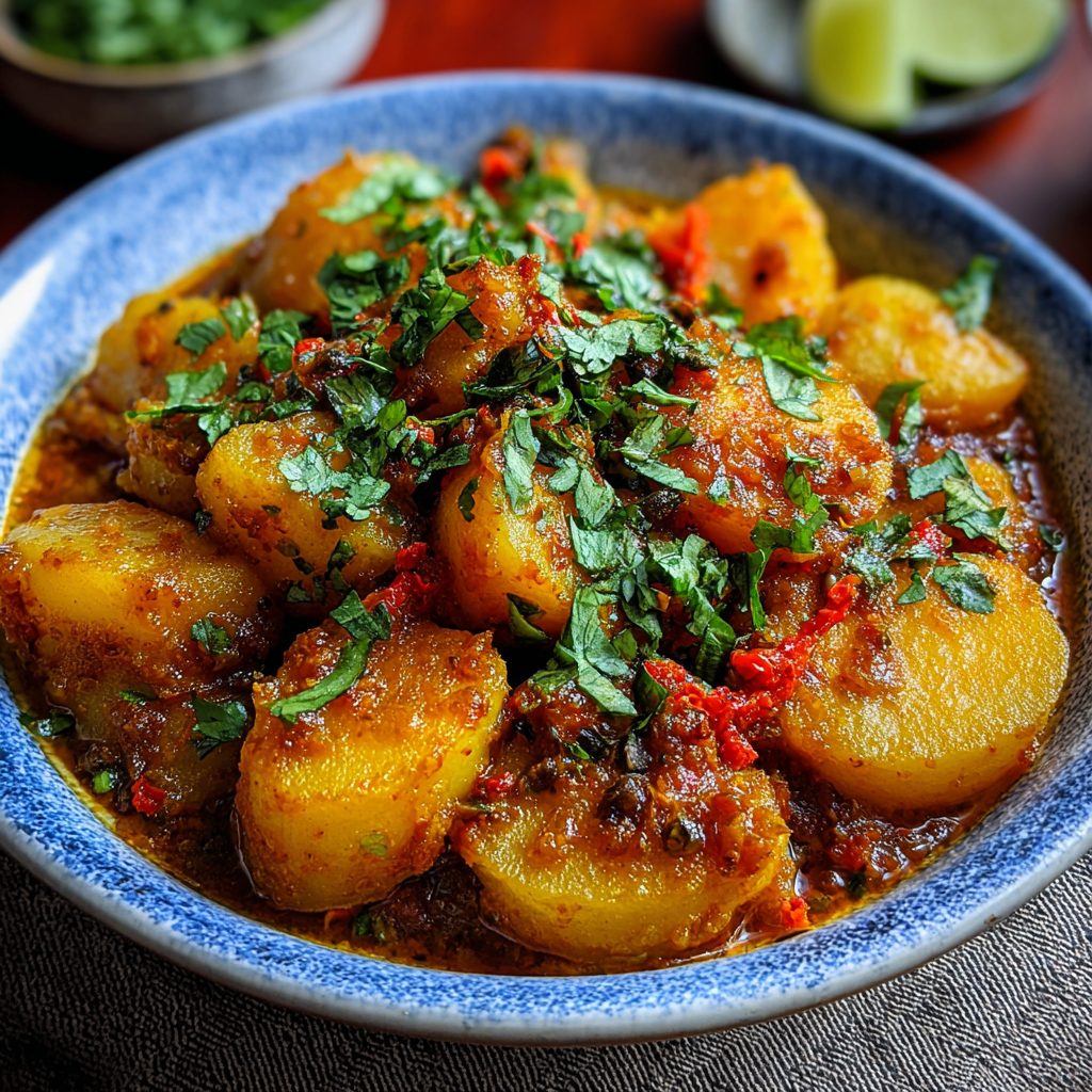 Dopiazeh Aloo is a traditional dish from Iran, known for its rich flavor built from simple ingredients—mainly potatoes, onions, and fragrant spices.