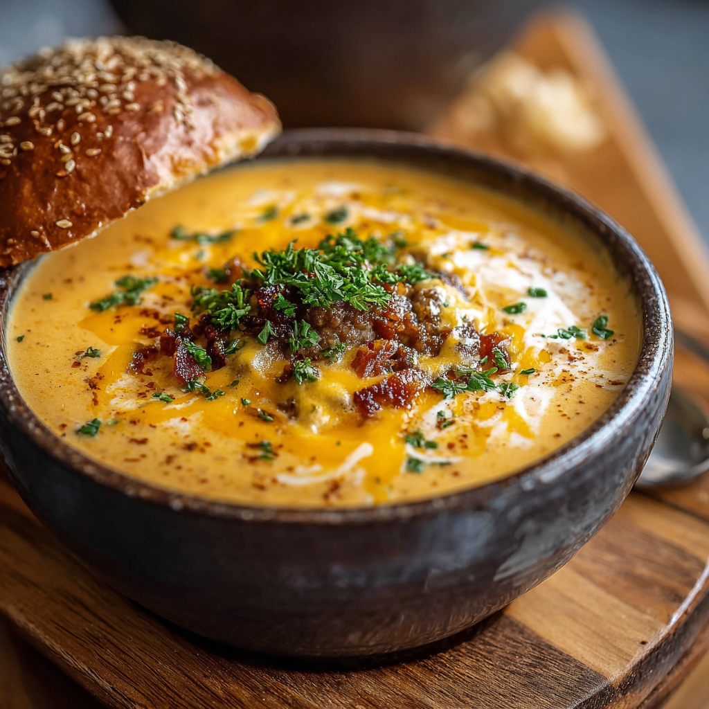 This Extra Creamy Slow Cooker Cheeseburger Soup delivers everything you love about a classic cheeseburger—juicy beef, melted cheese, and savory seasoning—transformed into a thick, creamy, spoonable soup. It’s warm, filling, and perfect for cold evenings or easy family dinners.