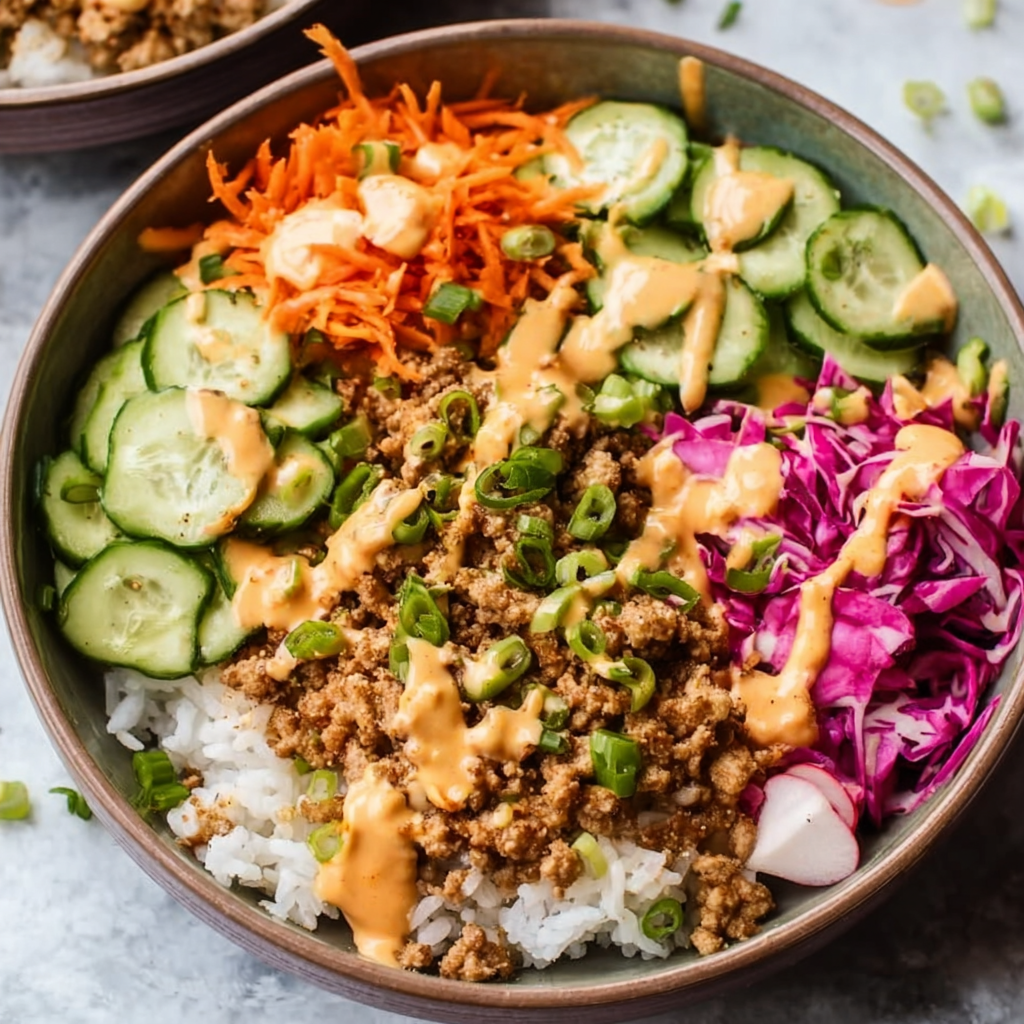 Ground Turkey Rice Bowls with Bang Bang Sauce