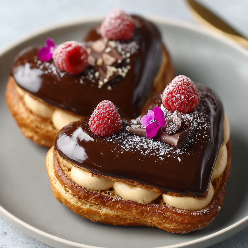 Heart-Shaped Chocolate Éclairs ❤️🍫 (Elegant French Pastry)
