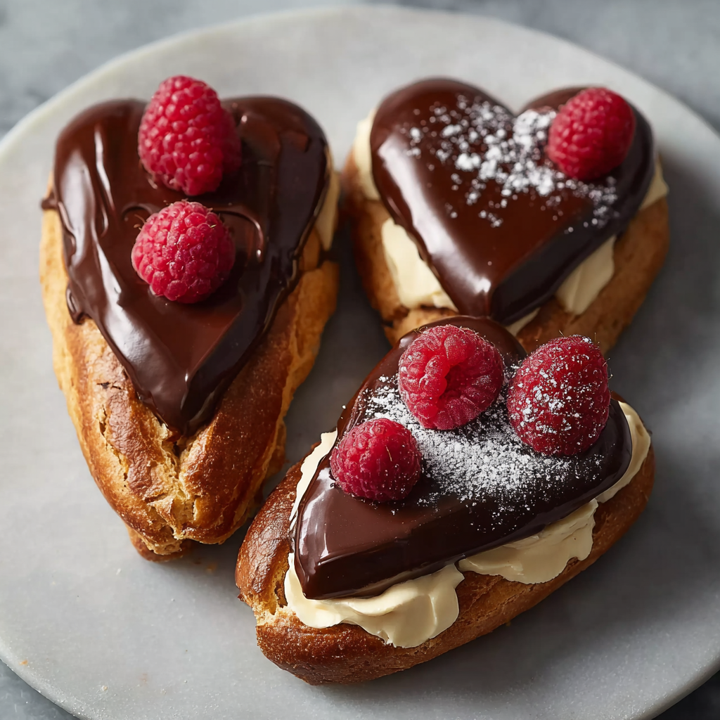 These Heart-Shaped Chocolate Éclairs are a romantic twist on the classic French pastry. Made from delicate choux pastry, filled with silky vanilla cream, and topped with glossy chocolate ganache, shaping them into hearts makes them perfect for special occasions like anniversaries or Valentine’s Day.