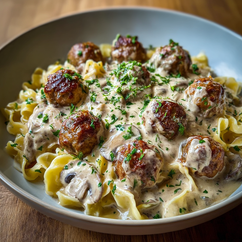 Make it and share your results in the comments — tell us whether you used the panade technique, which pasta or base you chose, and whether the leftovers survived to become the next-day pasta bake. Leave a review, share with someone who loves both meatballs and stroganoff, and subscribe to our newsletter for more deeply flavored, comfort-food-first recipes every week.