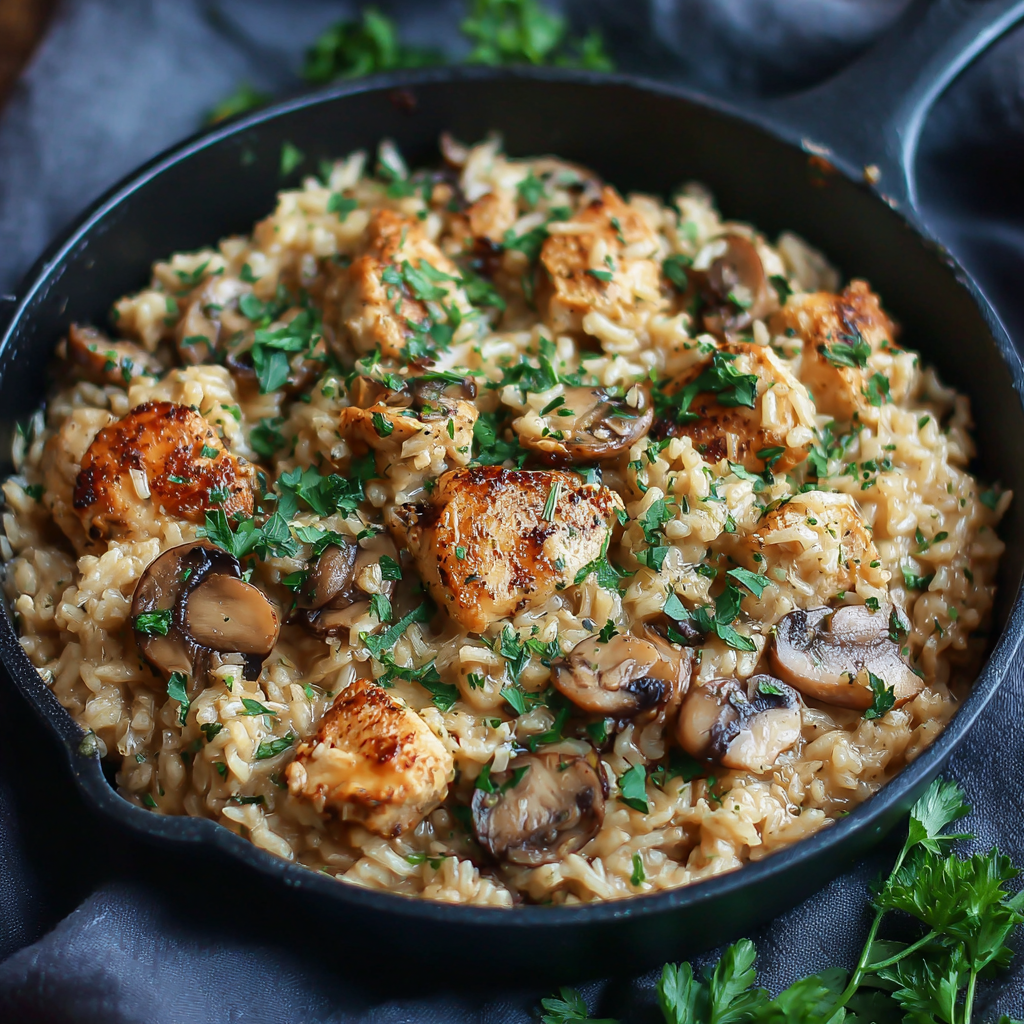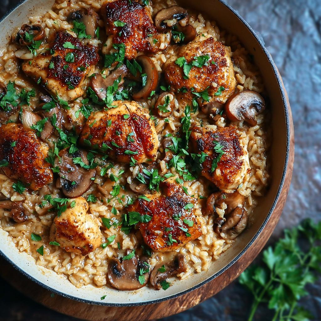 This One Pot Chicken & Mushroom Rice is rich, savory, and perfectly balanced. Juicy chicken, tender mushrooms, and fluffy rice absorb all the flavors together, creating a creamy, satisfying dish with minimal effort.