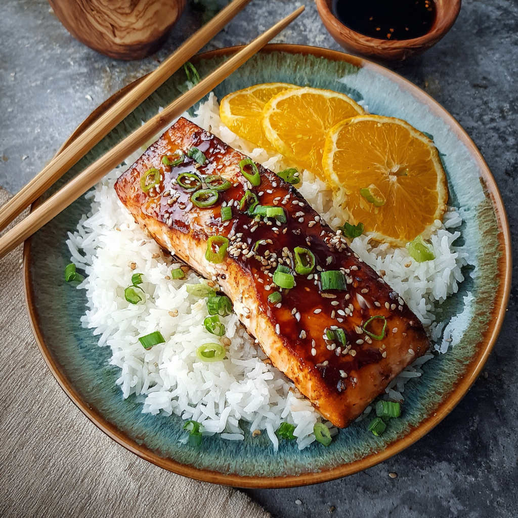 Teriyaki-style cooking originates from Japan, where foods are traditionally glazed with soy sauce, mirin, and sugar. This version adds fresh orange juice for a vibrant twist that pairs perfectly with salmonβs natural richness.
