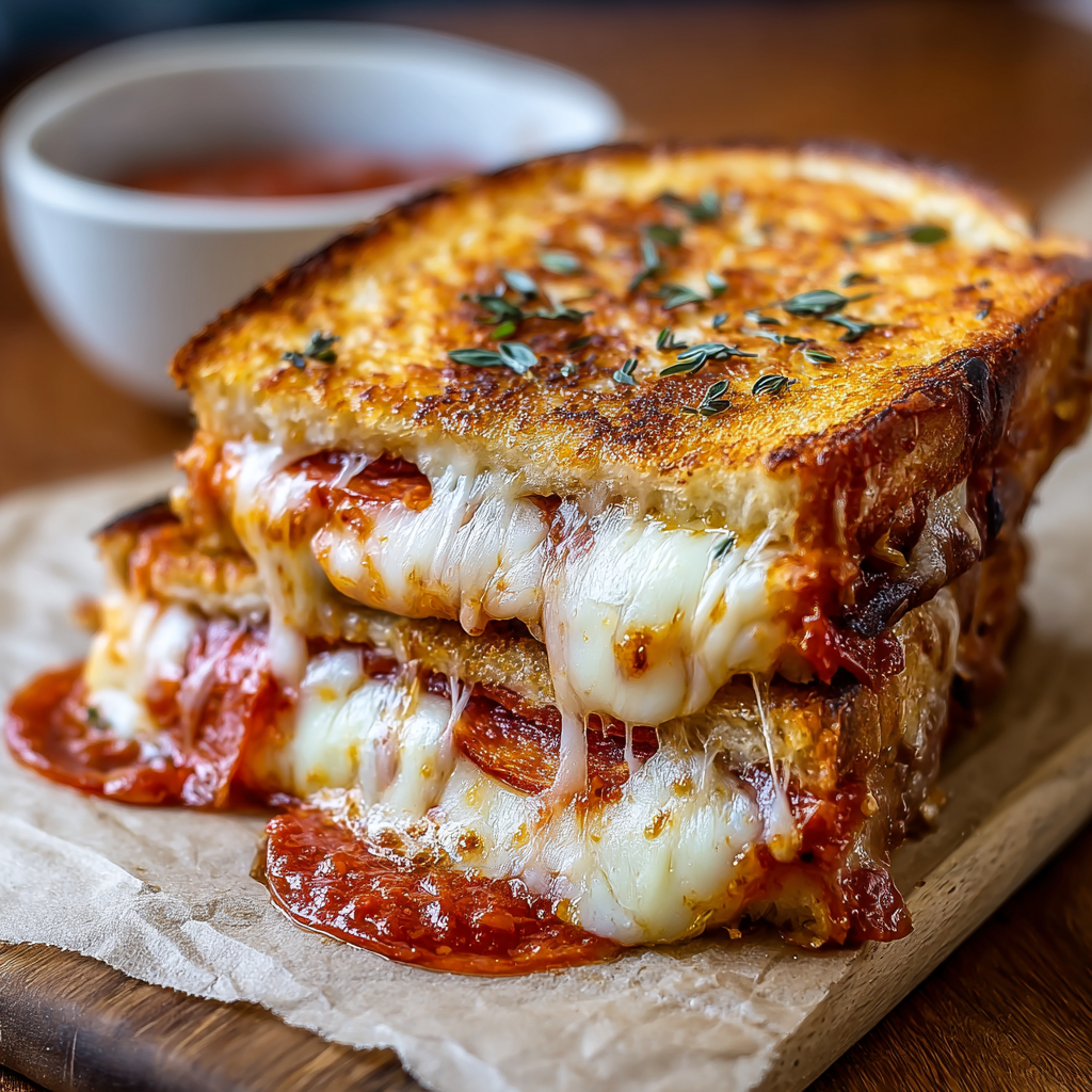 When two legendary comfort foods collide—gooey grilled cheese and classic pizza—you get the irresistible Pizza Grilled Cheese. Think crispy golden bread, stretchy melted mozzarella, rich tomato sauce, and your favorite pizza toppings all pressed into one handheld masterpiece.
