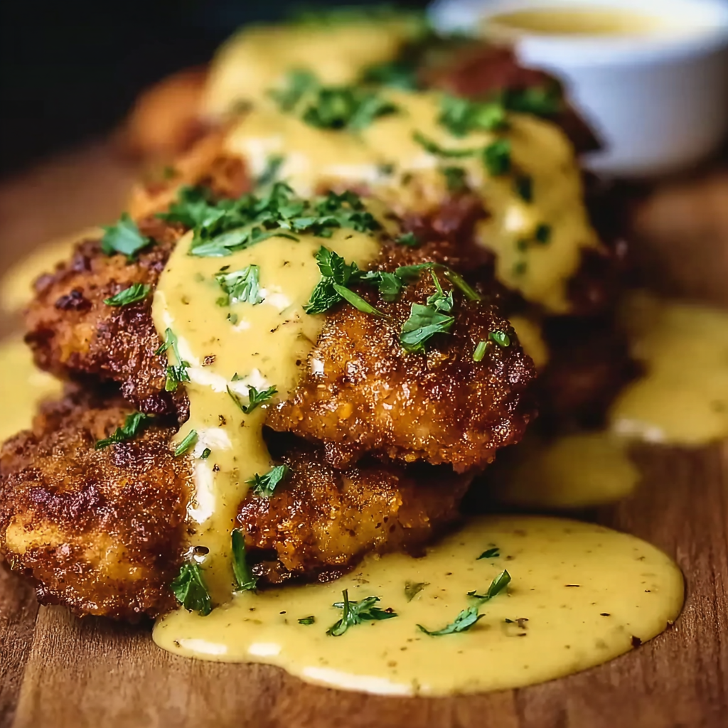 Pretzel Chicken with Mustard-Cheddar Sauce π₯¨π (Crispy, Savory & Comforting)