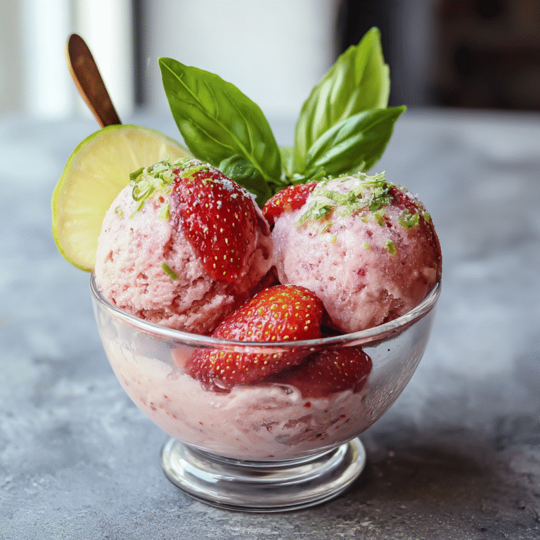 Roasted Strawberry, Lime & Basil Ice Cream