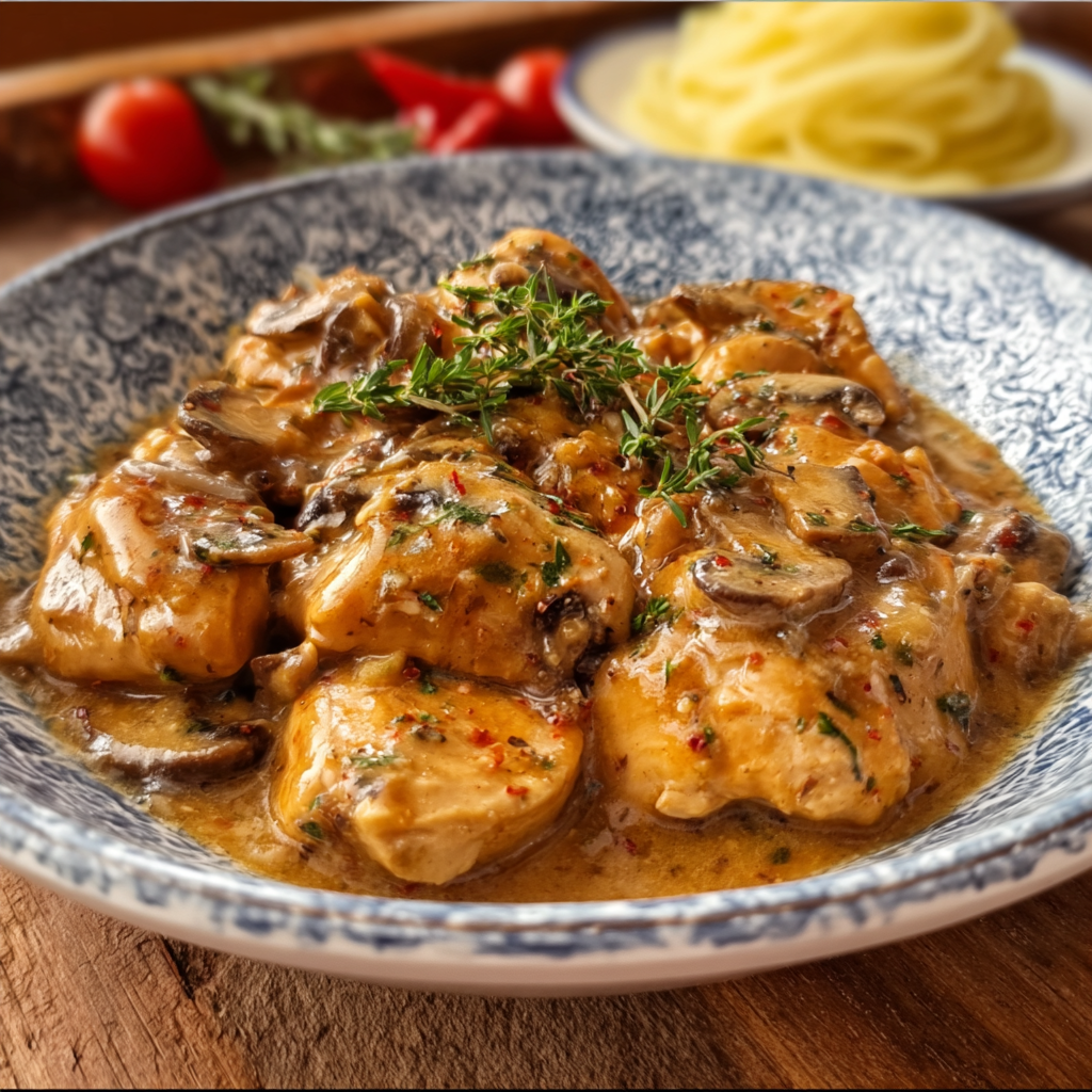 Simple chicken stroganoff proves that a 35-minute weeknight dinner can taste like something that took all afternoon. Golden seared chicken, caramelized mushrooms, and a deeply savory cream sauce — one pan, straightforward technique, and the kind of result that makes everyone ask what the recipe is.