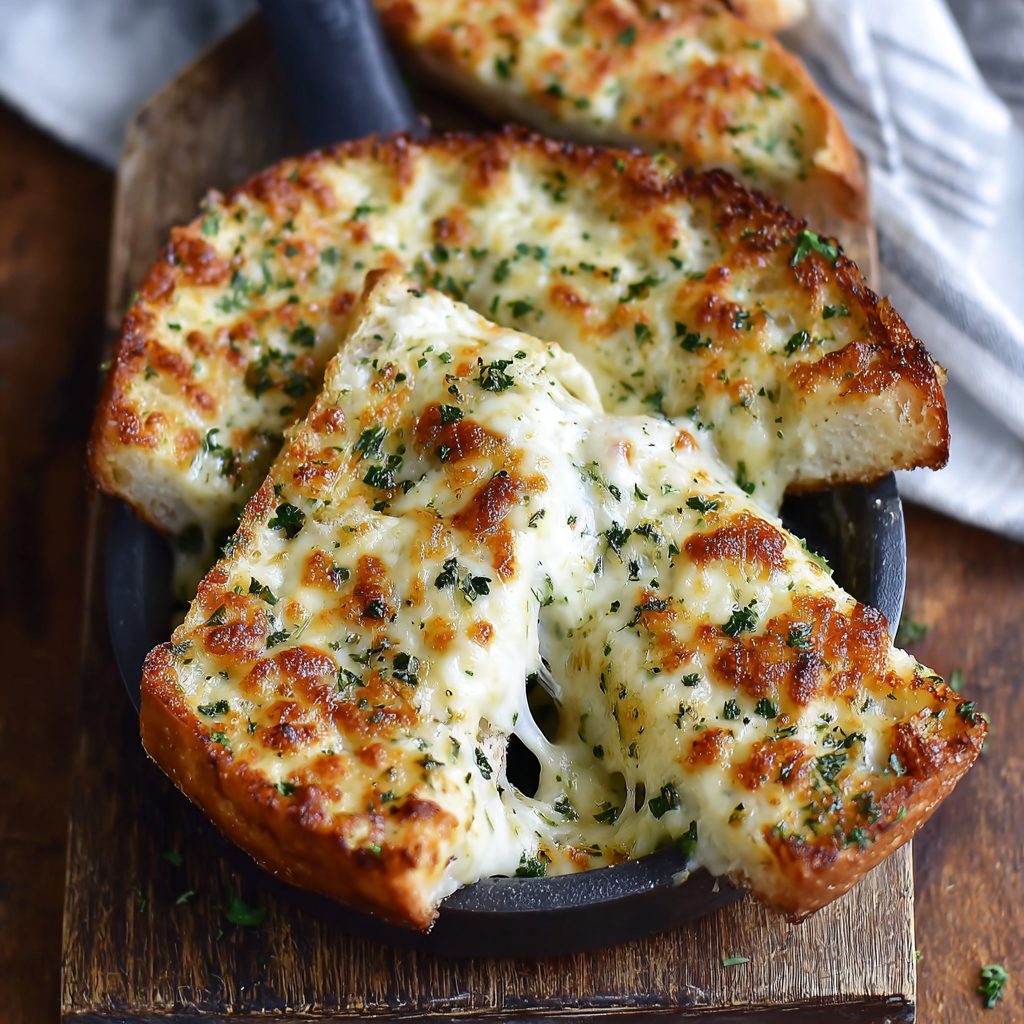 What bread produces the best result? A day-old French baguette with a crispy crust and a chewy interior produces the best combination of structural integrity under the butter and cheese and textural contrast between the broiled surface and the soft crumb. Fresh baguette works but is softer and benefits from the pre-toasting step. Ciabatta produces a more open, airy crumb that absorbs butter with particular effectiveness. Italian bread is wider and produces larger pieces — more appropriate for a shareable appetizer than a side dish.