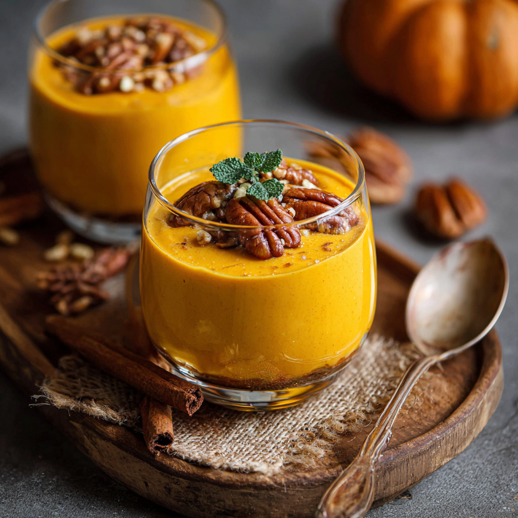 Elegant individual cups: Serve in small glass dessert cups or vintage jam jars so the warm orange color of the pudding is fully visible. Layer with coconut whipped cream and finish with a single toasted pecan on top for a presentation that looks far more effortful than it actually is.